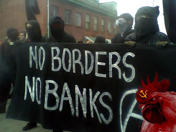 But hey, help is on the way. It turns out that the People's Cube has a great post up on this week's anti-globalization protests, "Dude! G20 Riots In Pittsburgh." Great images and photos. Plus, "Down With Capitalism!!!" And the narrator's got this red rooster to assist the chronicle of events:
